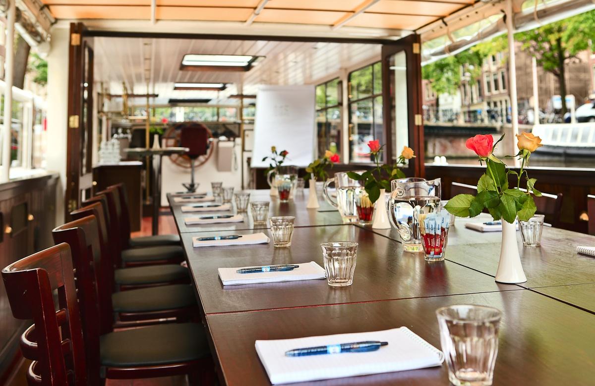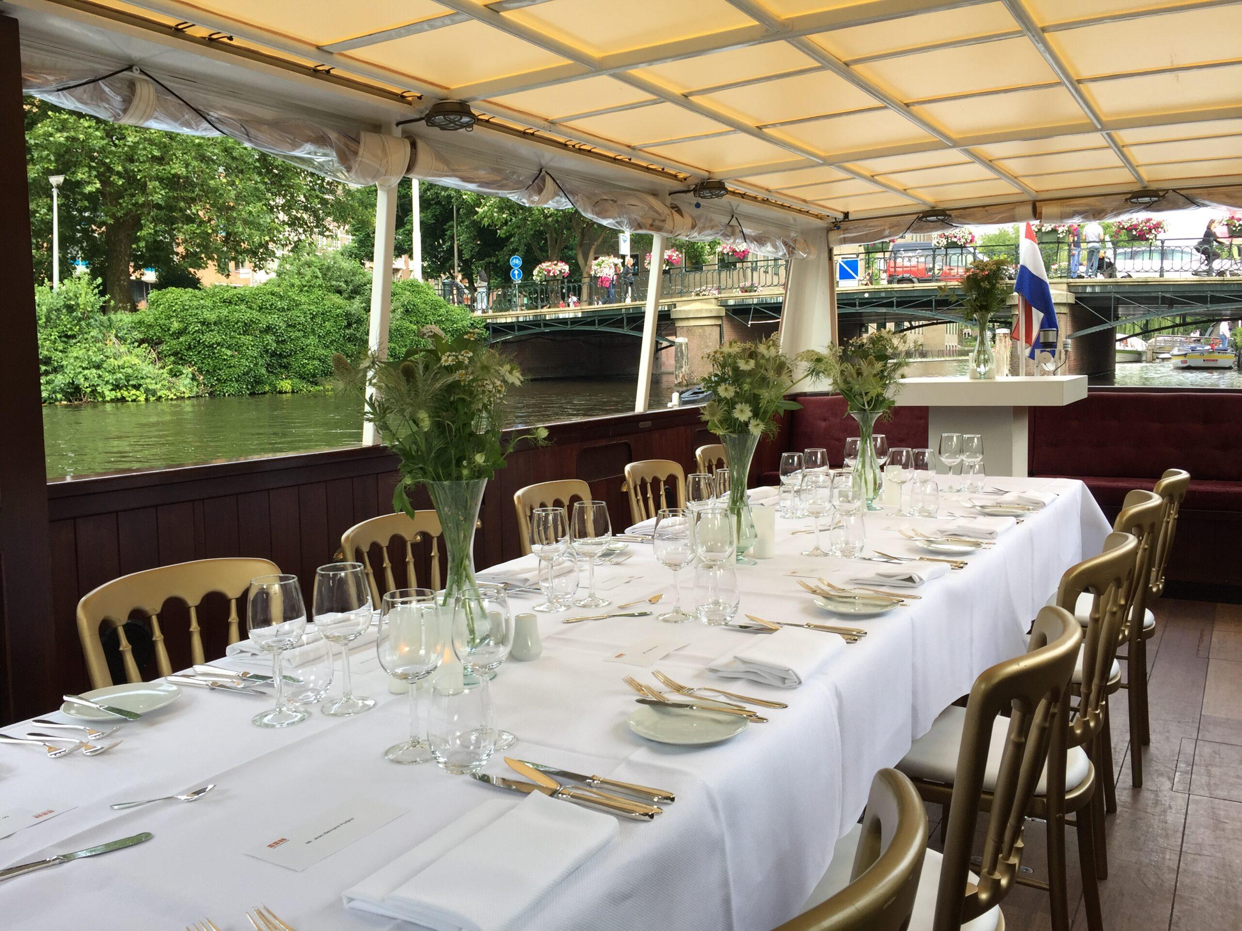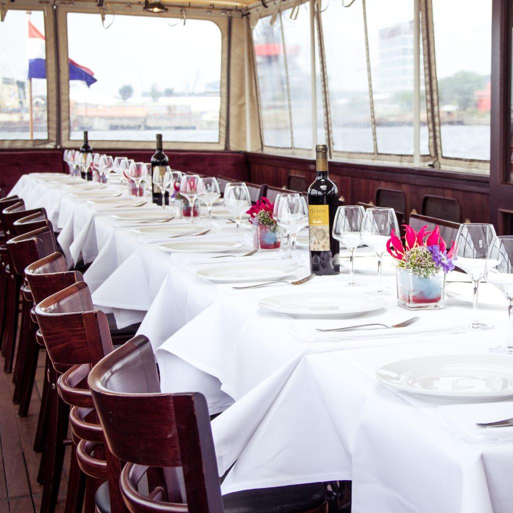 The city tender Multatuli is stylish, spacious and comfortable. The interior of this multipurpose boat can be customized for any occasion. Due to the electric drive, the boat sails cleanly and silently. The perfect sailing venue for a reception, wedding, drinks or dinner cruise.